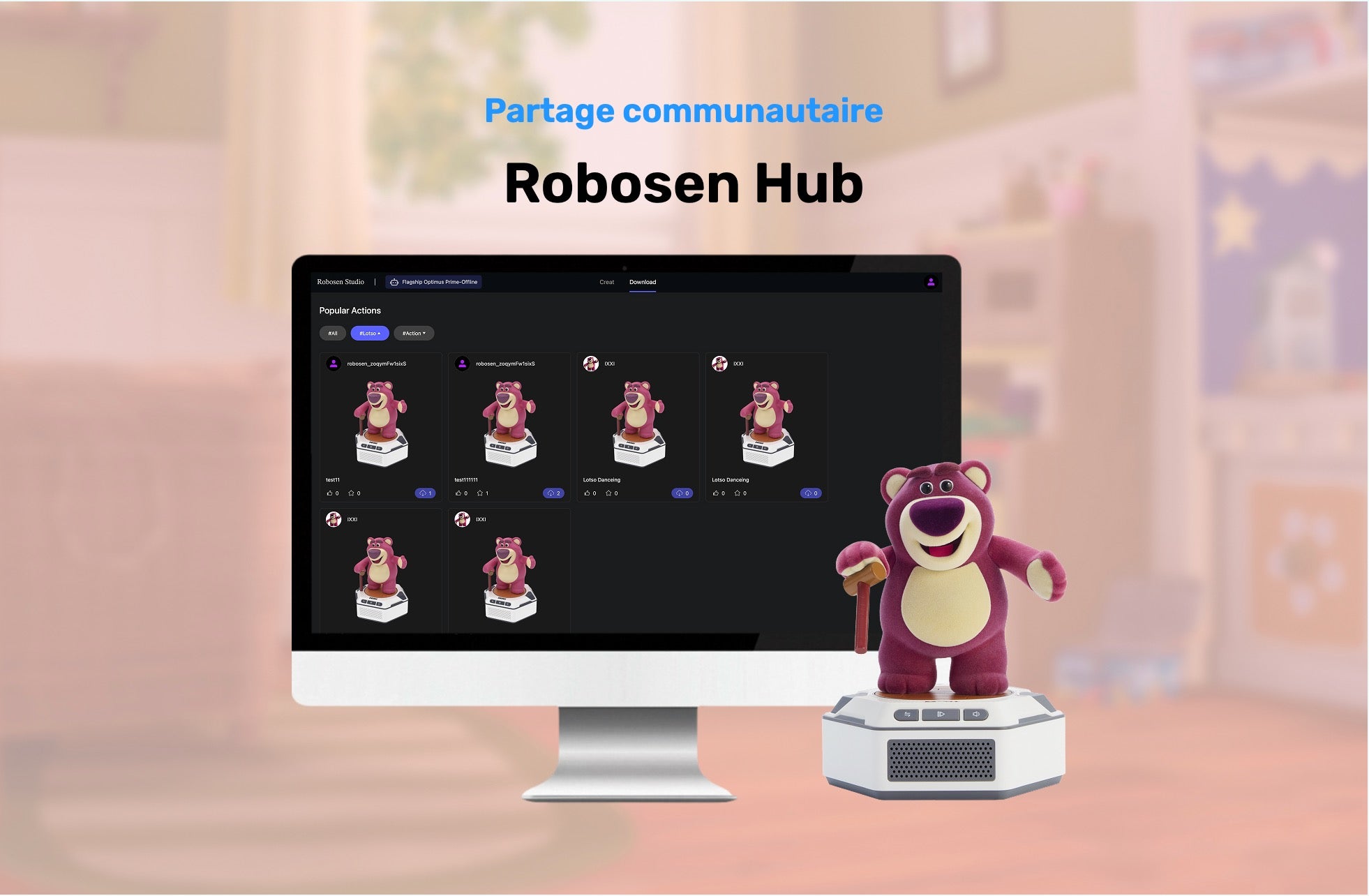 Partagez et téléchargez de nouveaux contenus de personnages avec d'autres fans et utilisateurs du monde entier via Robosen Hub.