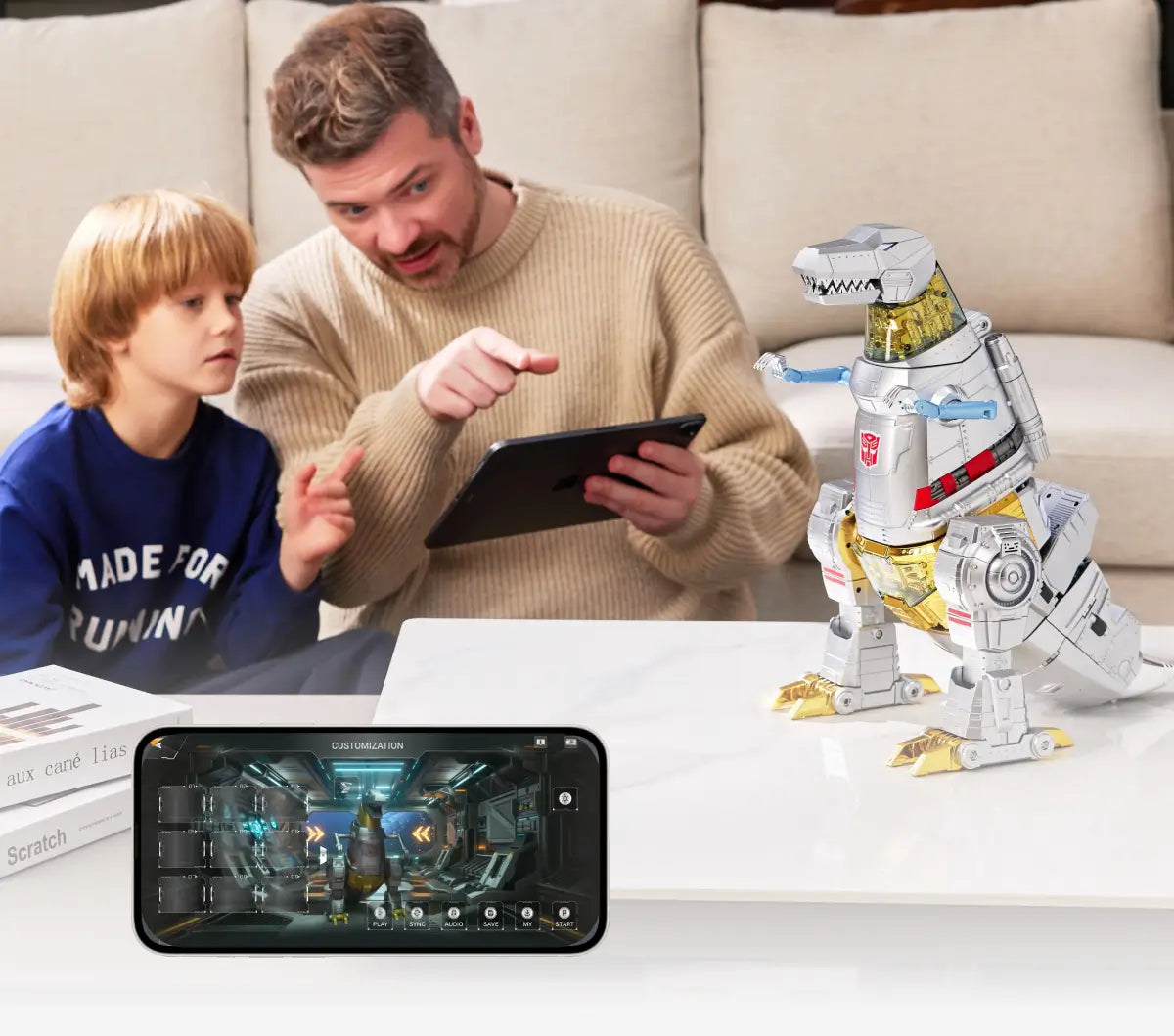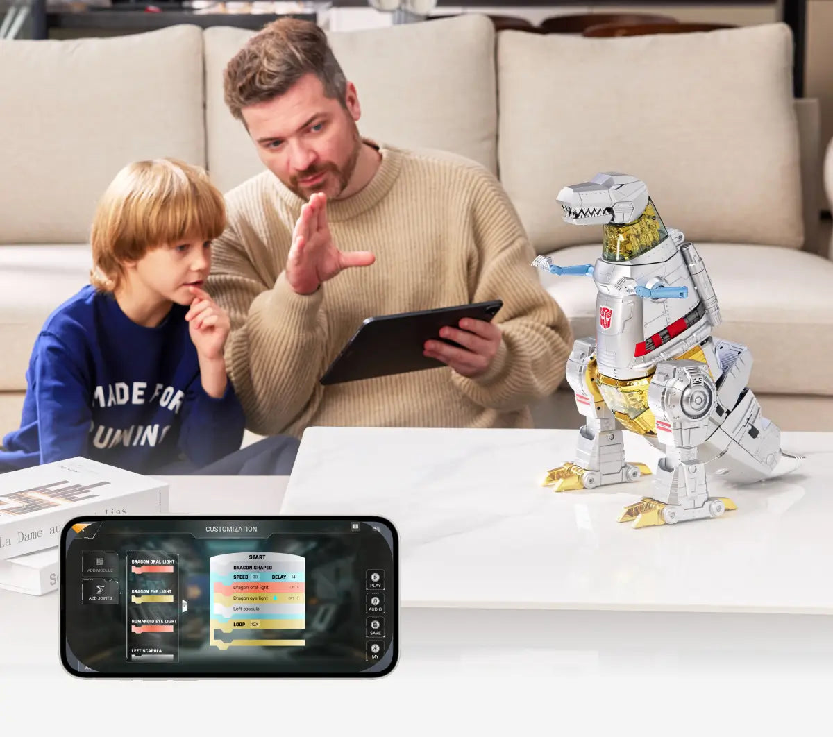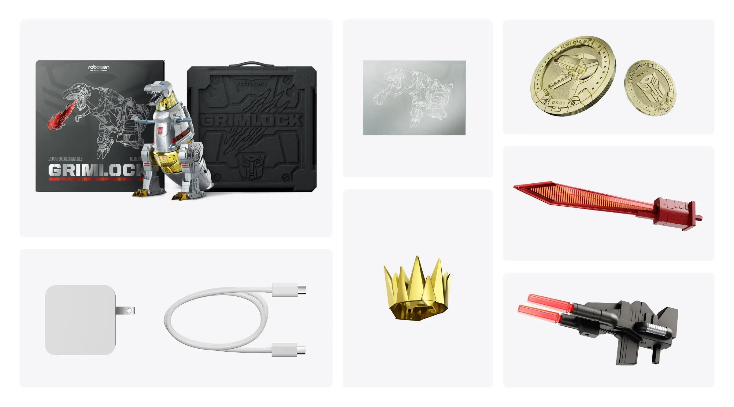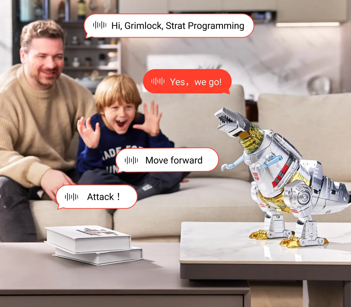 Grimlock intègre des répliques audio originales de Transformers, enregistrées exclusivement pour Robosen par Gregg Berger, la voix originale de Grimlock G1.